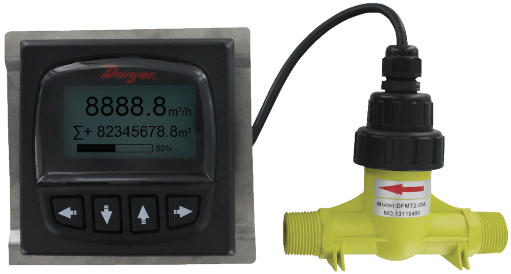 Brand: Dwyer Instruments, Inc.The Series DFMT2 Remote Digital Paddlewheel Flow Transmitter is a two piece digital flow transmitter that provides instantaneous, as well as totalizing flow monitoring. The two piece design allows the user to separate the control panel from the application, making it ideal for industrial use in reverse osmosis water purifying systems and any other applications where space is limited.