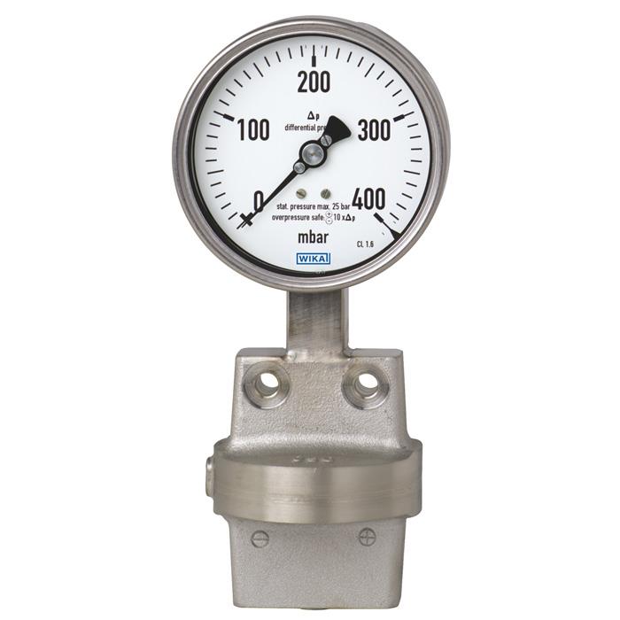 Brand: WIKA Instruments Ltd.These differential pressure gauges are made of highly corrosion-resistant stainless steel and feature an all-metal, all-welded media chamber to ensure long-term leak tightness (no elastomer sealing elements).