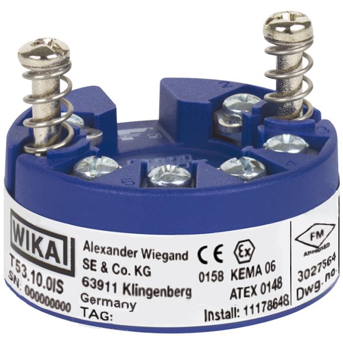 Brand: WIKA Instruments Ltd.The model T53.10 fieldbus temperature transmitter with FOUNDATION™ and PROFIBUS® PA fieldbus communication is suitable for temperature measurement with resistance thermometers and thermocouples. Furthermore resistance and mV measurements with or without customerspecific linearisation are possible.