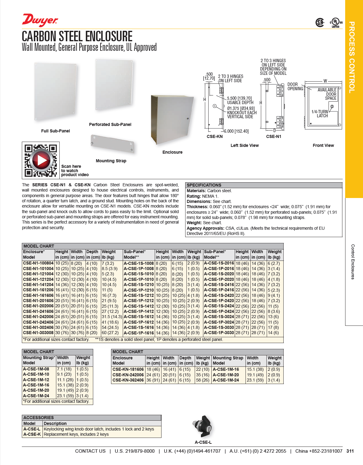 Brand: Dwyer Instruments, Inc.THE SERIES CSE-N1 CARBON STEEL ENCLOSURES are spot-welded, wall mounted enclosures designed to house electrical controls, instruments, and components in general-purpose areas.