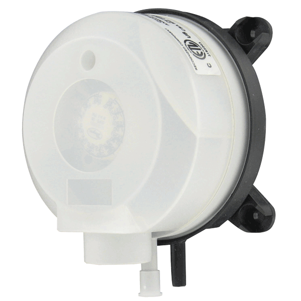 The EDPS is available with settings from 0.08" w.c. (20 Pa) up to 16" w.c. (4000 Pa). The silicone diaphragm and PA 6.6 body make the series EDPS ideal for use with air and other noncombustible gases. The compact size, adjustment knob and meeting the UL508 standard make the EDPS the perfect choice for H.V.A.C. applications.