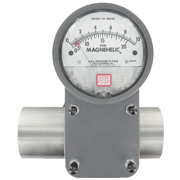 The Magnehelic® gauge provides a large, clear and accurate display of your differential pressure reading. Each meter is calibrated at standard atmospheric conditions. The dual scale reads in SCFM and in w.c. The meter is supplied with easy to read reference charts for various flow conditions. It is available in line sizes from 1" to 4" and can handle vacuum and pressure applications.