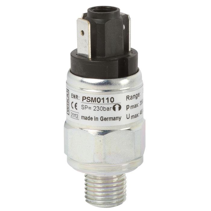 Brand: WIKA Instruments Ltd.Model PSM01 screw-in pressure switches in a diaphragm or piston variant open or close a circuit, depending on whether the pressure is dropping or rising. An adjustment screw enables easy and convenient on-site setting of the required switch point. Optionally, WIKA offers its customers the factory setting of the switch point.